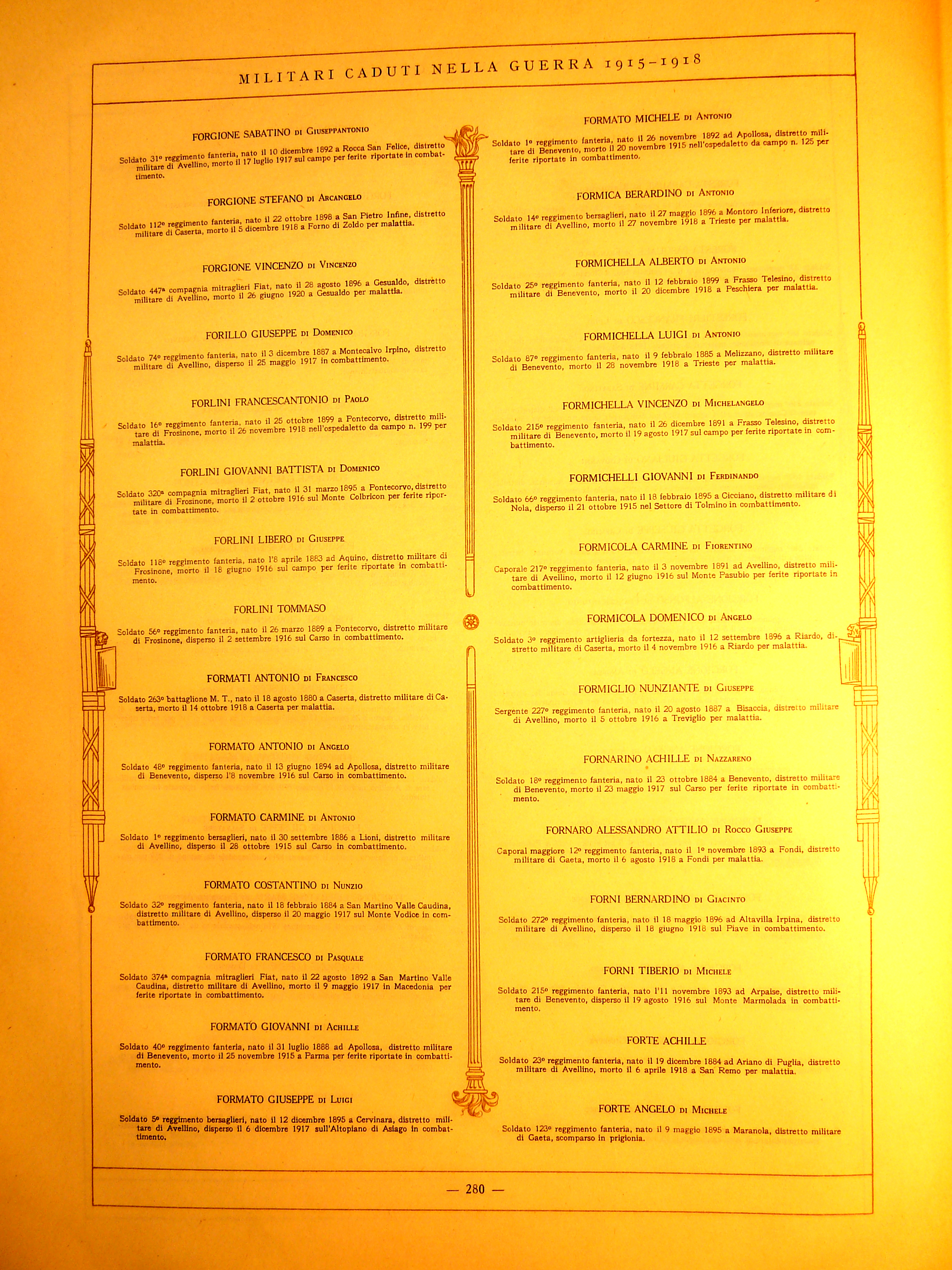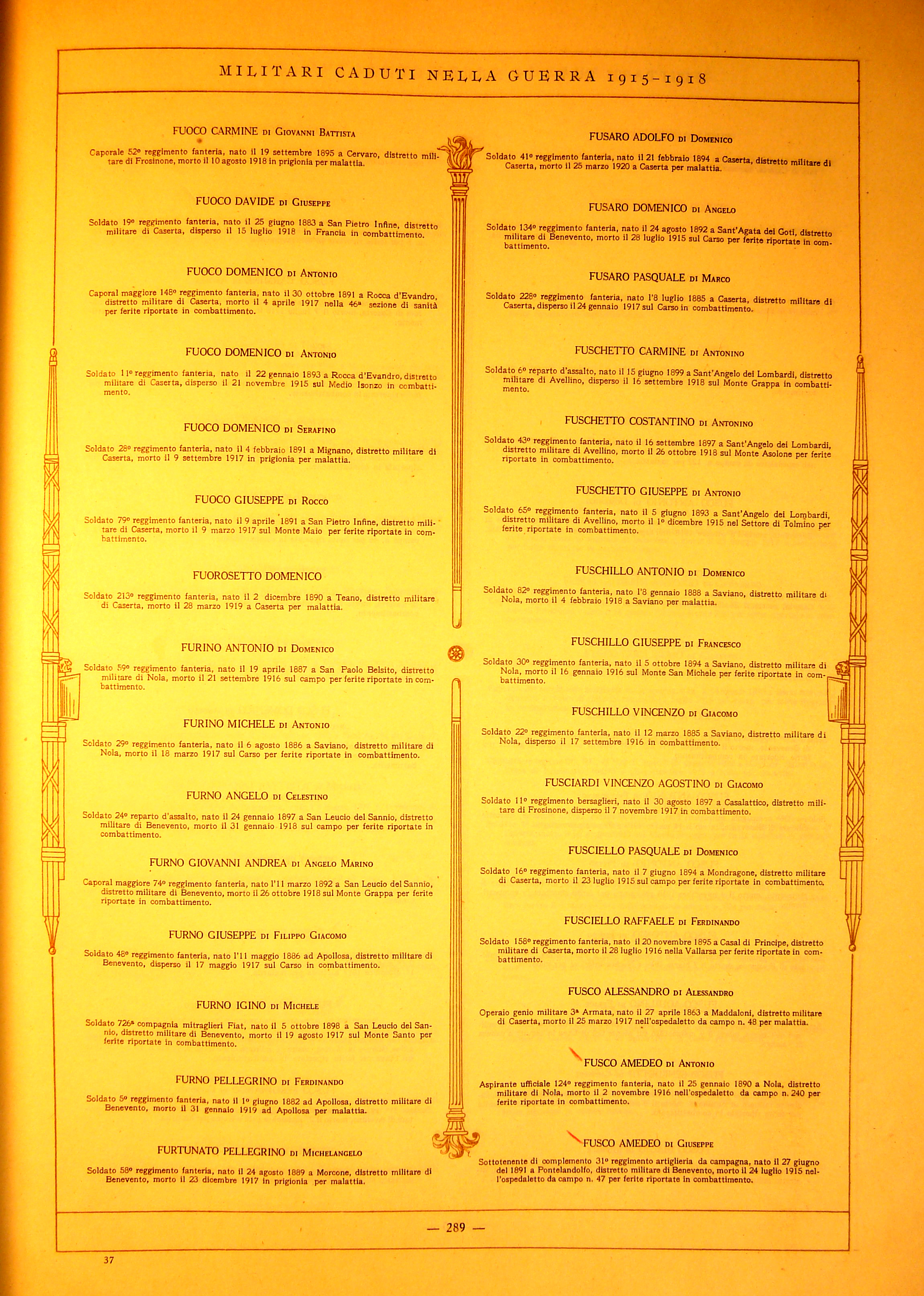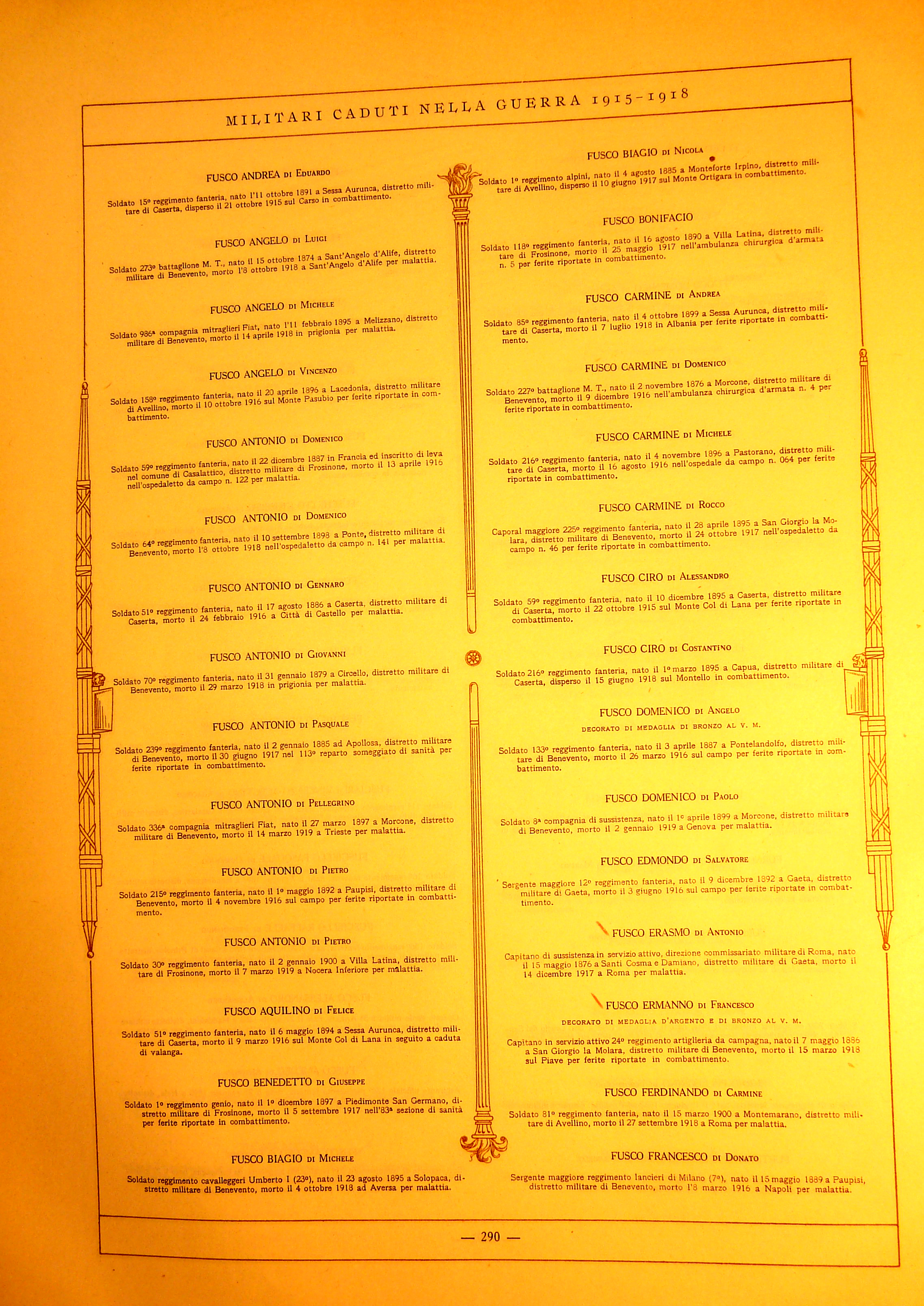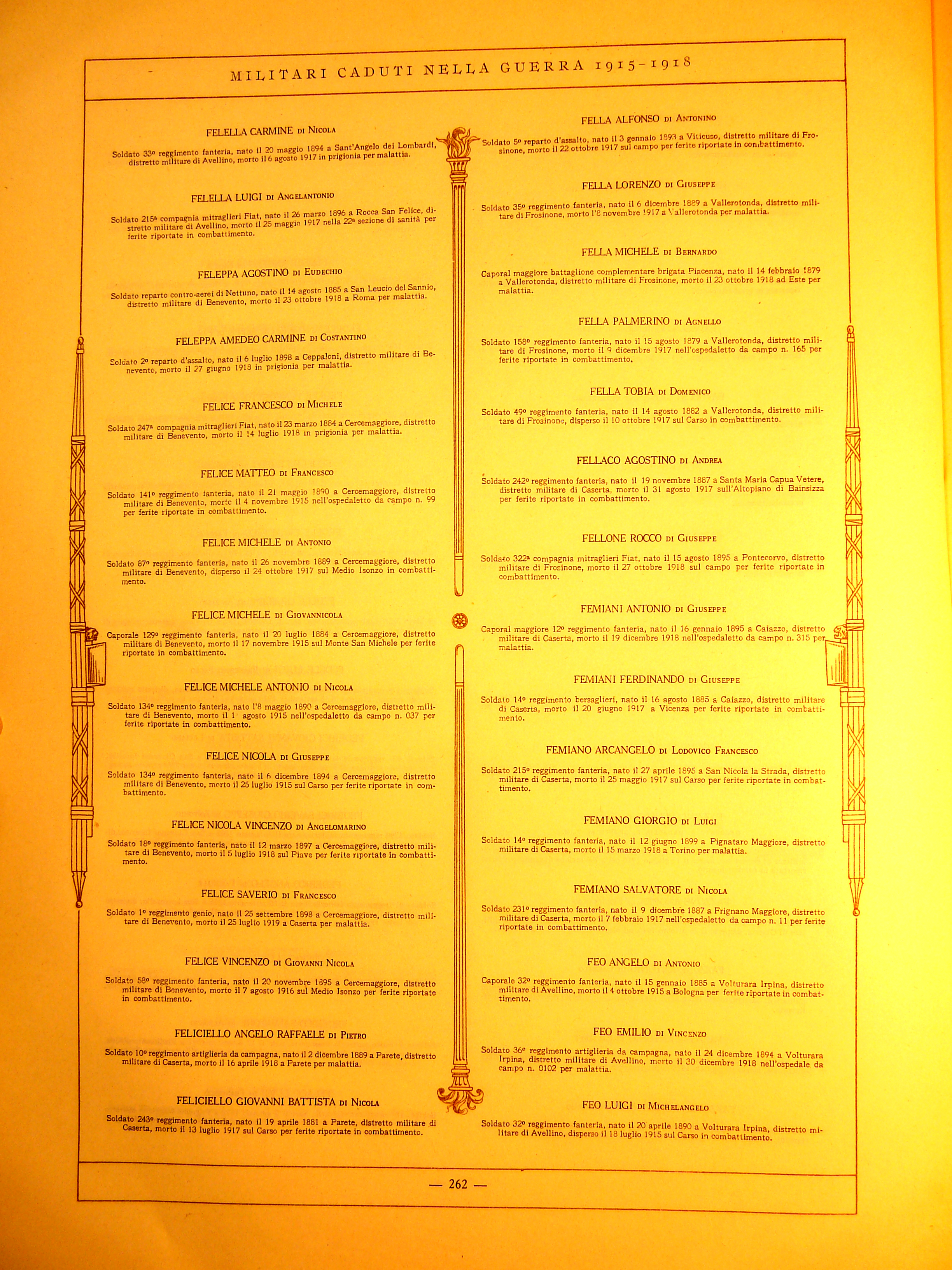 | Furno Pasquale | 1875 | Apollosa | Soldato | 263 Battaglione Milizia territoriale | 1918 | Apollosa | Malattia | ||