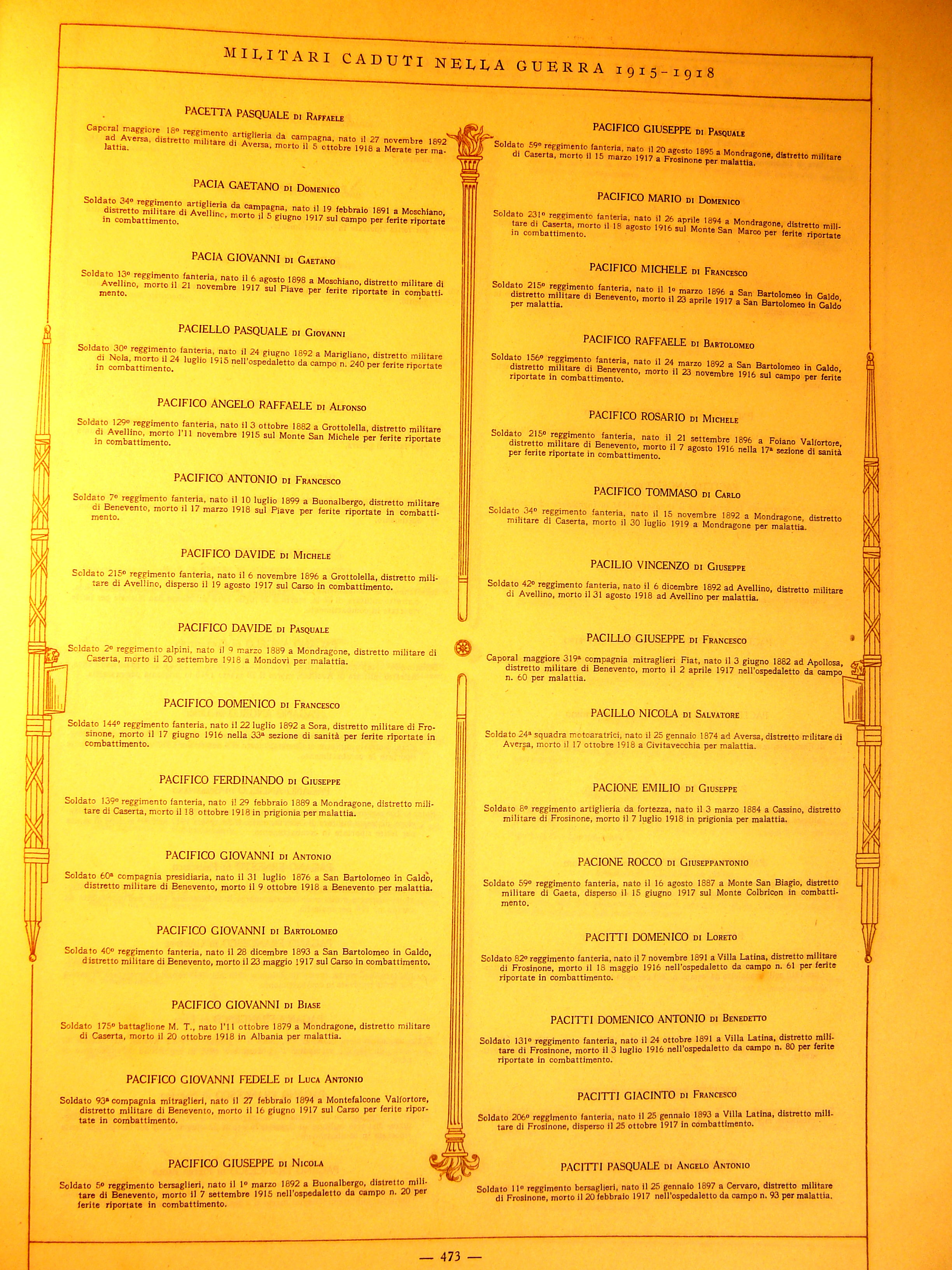| Pacillo Domenicantonio | 1892 | Apollosa | Soldato | 1915 | Tarhuna | Tripolitania | |||