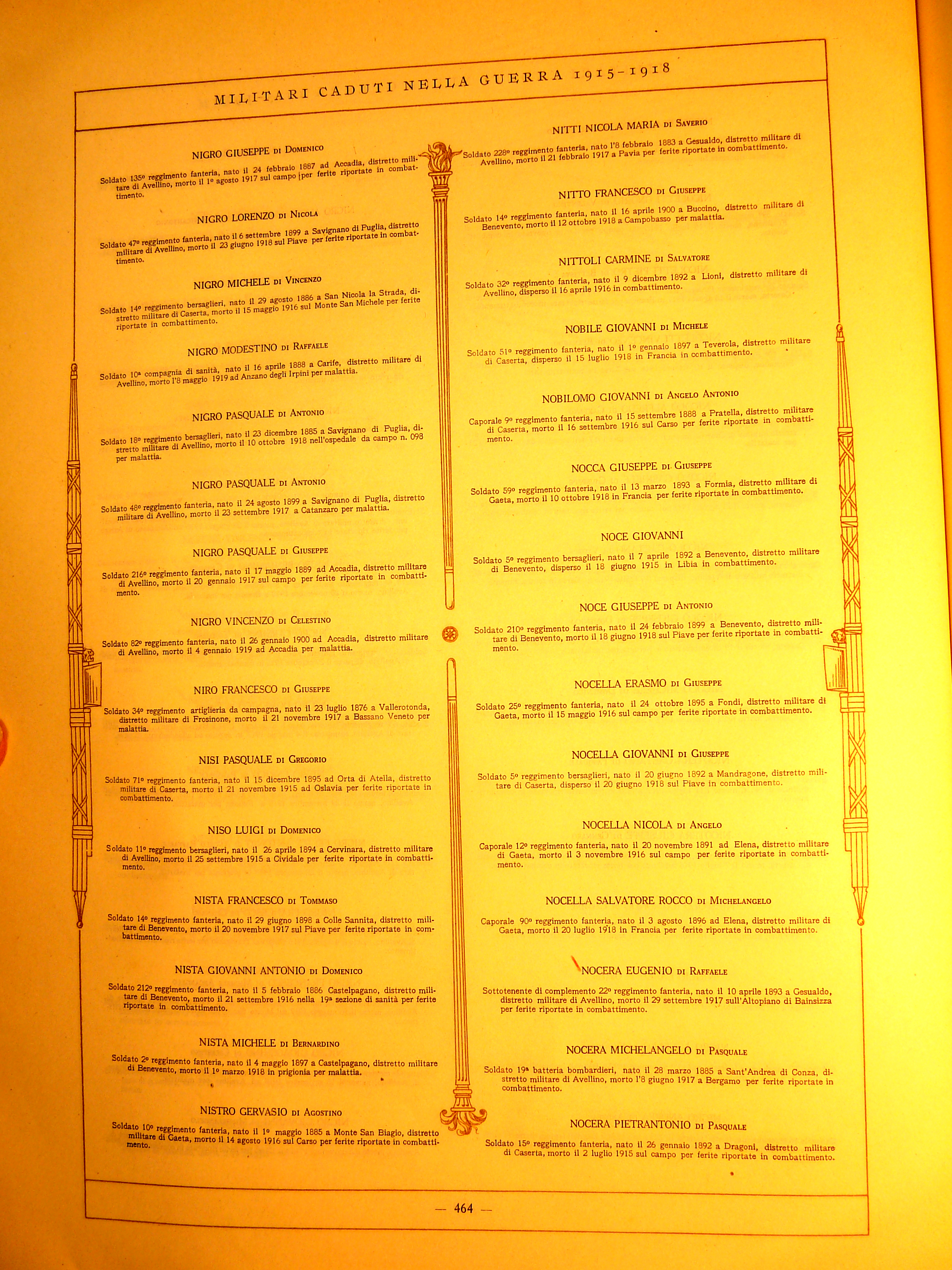 | Noce Giuseppe | 1899 | Benevento | Soldato | 210 Reggimento Fanteria | 1918 | Cassinelle (Basso Piave) | Ferite Riportate In Combattimento | Visualizza | |