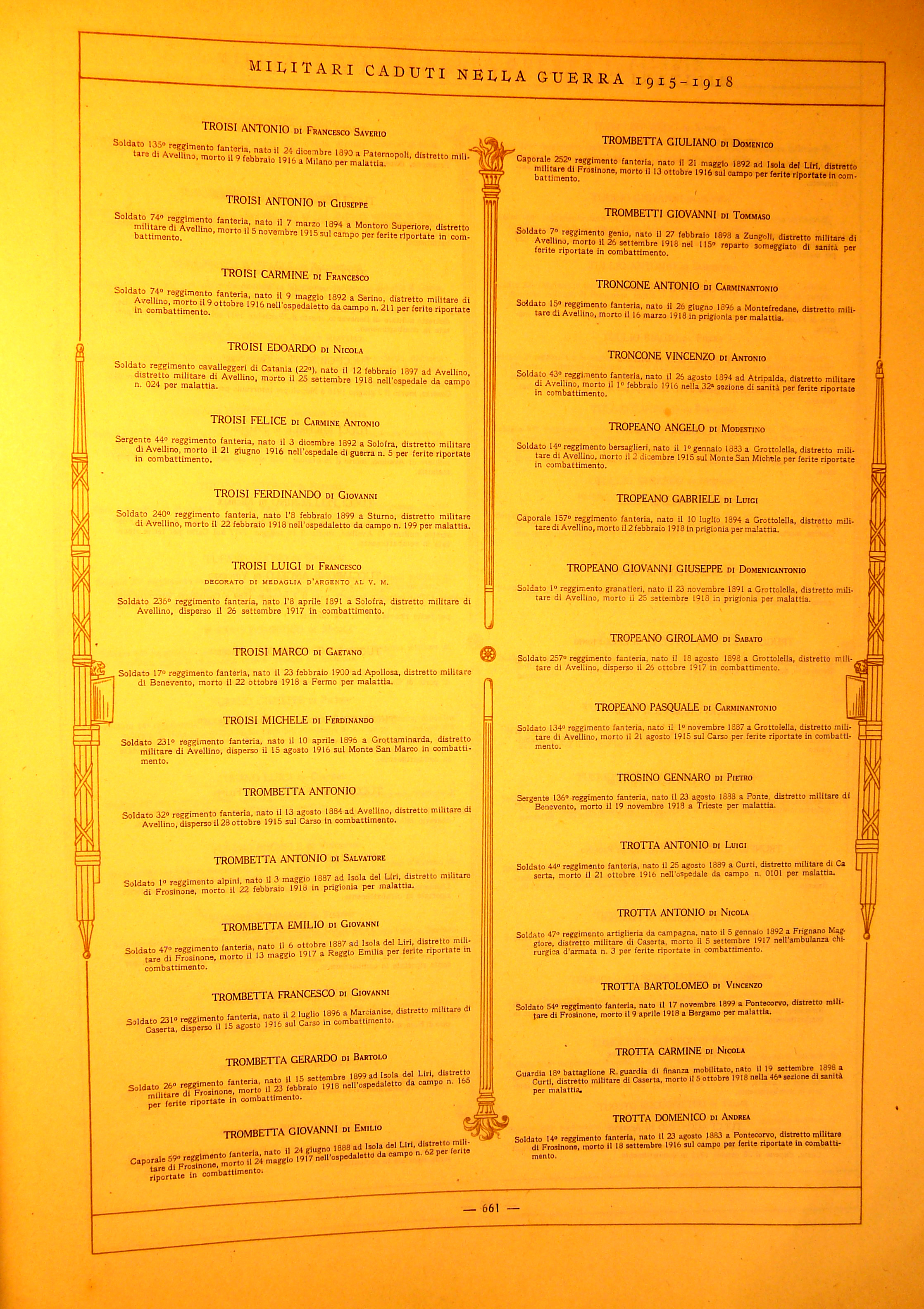 | Troise Marco | 1900 | Apollosa | Soldato | 17 Reggimento Fanteria | 1918 | Ospedale Militare di Fermo. | Malattia | Visualizza | TROISI MARCO DI GAETANO |