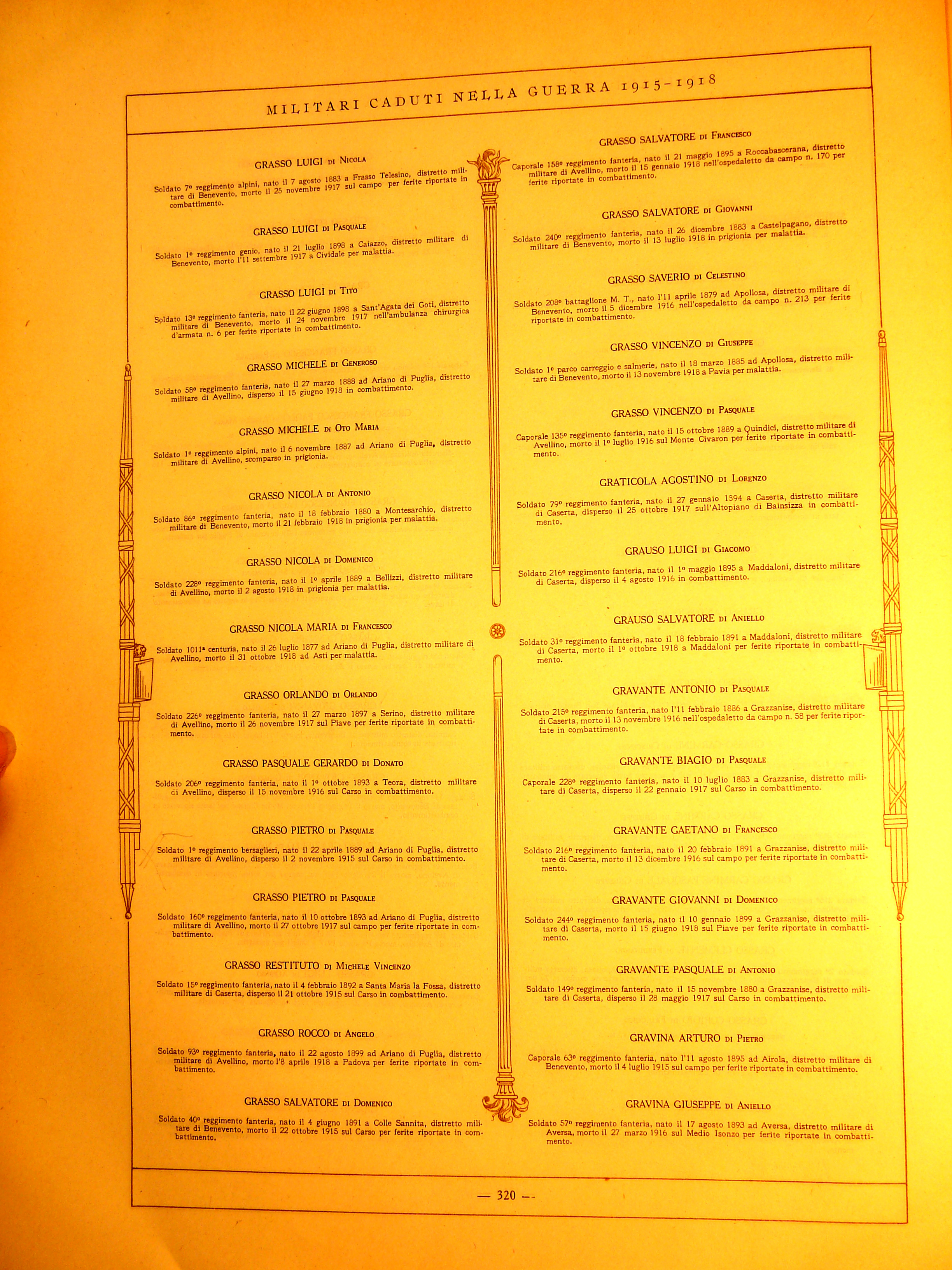 | Grasso Giovanni | 1896 | Apollosa | Soldato | 14 Reggimento Bersaglieri | 1916 | Monte Cimone | Ferite Riportate In Combattimento | Visualizza | |