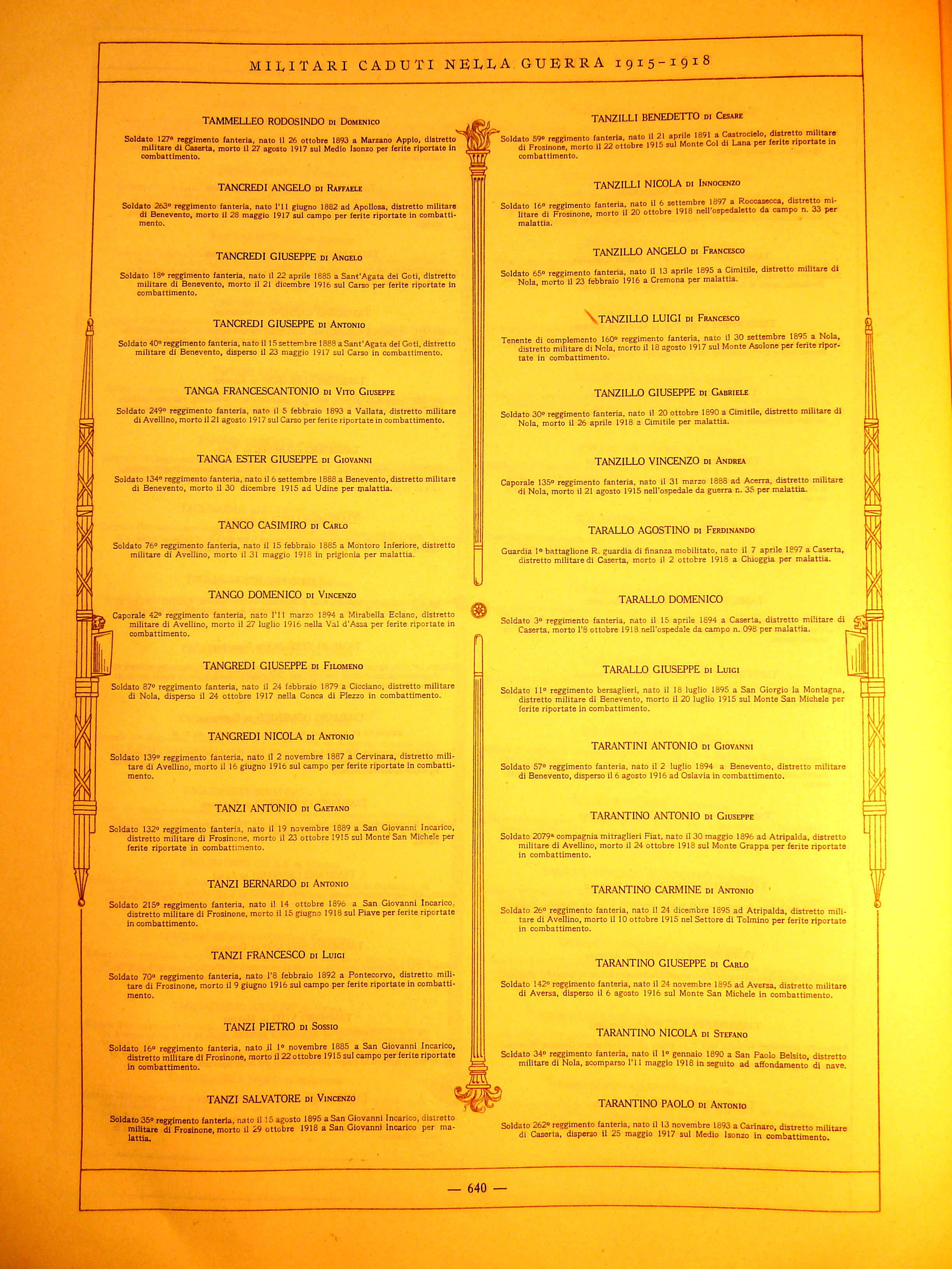| Tedesco Angelomaria | 1898 | Apollosa | Soldato | 58 Reggimento Fanteria | 1917 | Carso | Ferite riportate in combattimento | Visualizza | TEDESCHI ANGELO MARIA DI ANTONIO |