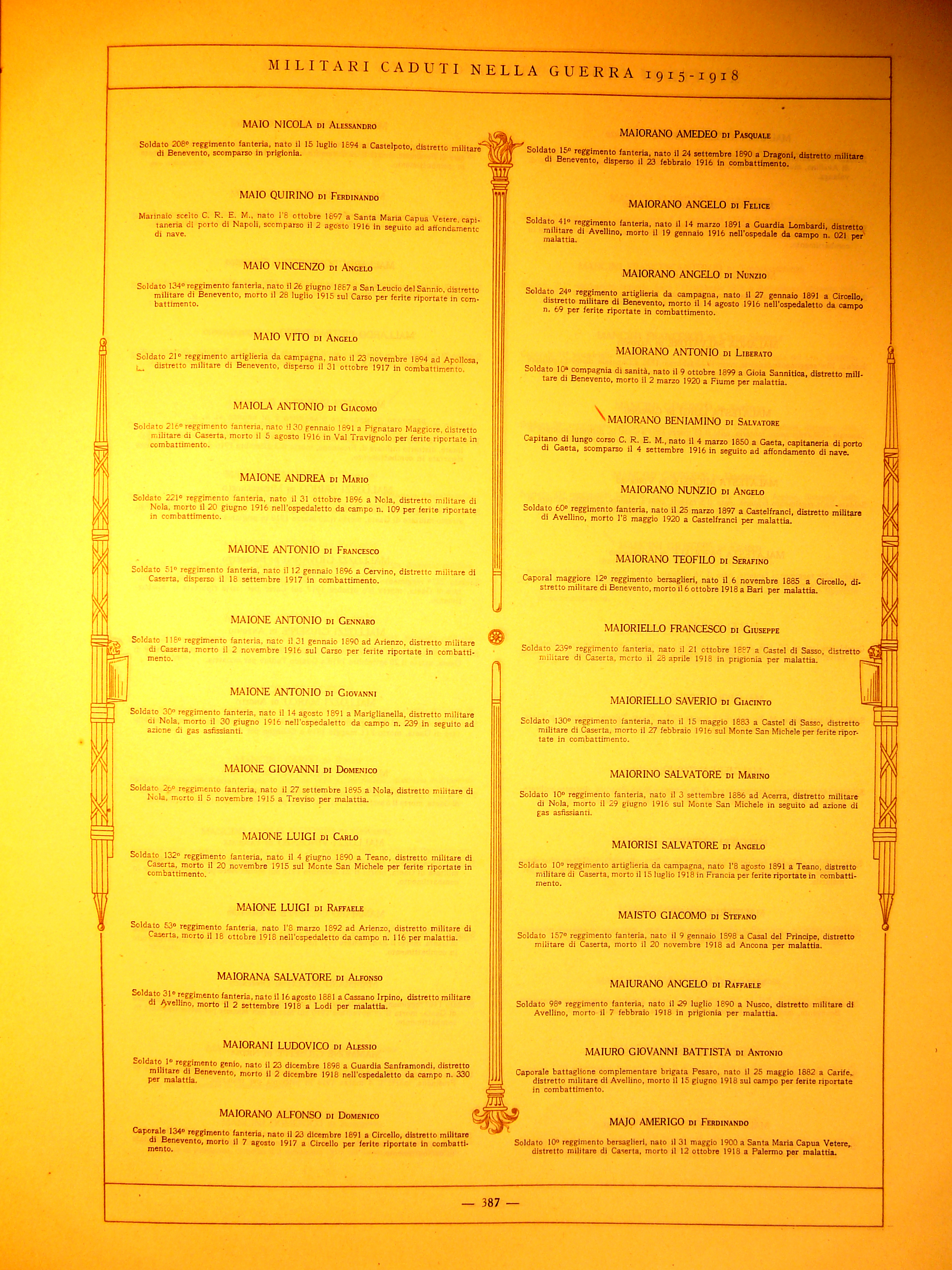 | Maio Vito | 1894 | Apollosa | Soldato | 21 Reggimento Artiglieria Da Campagna | 1917 | Caporetto | Ferite Riportate In Combattimento | Visualizza | |