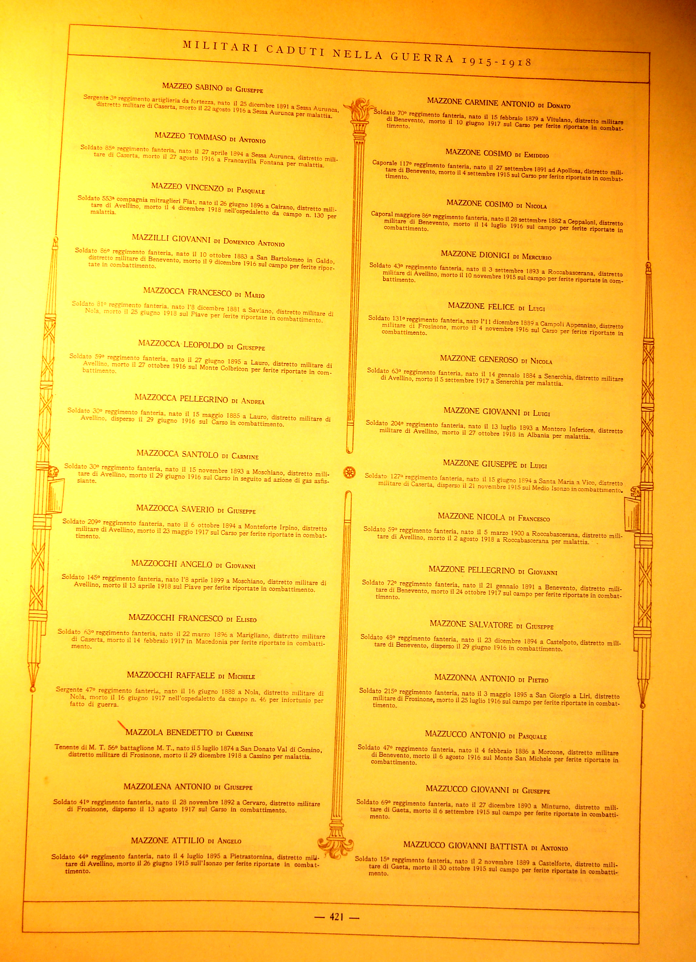 | Mazzone Raffaele | 1893 | Apollosa | Soldato | 1918 | Apollosa | Malattia | Albania | ||